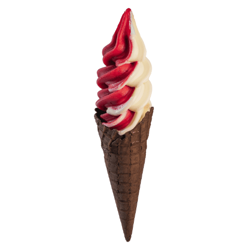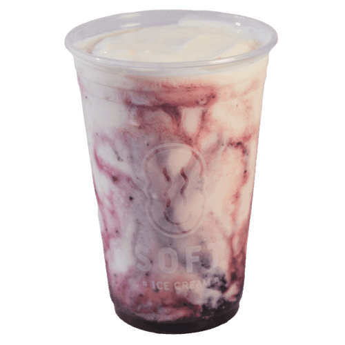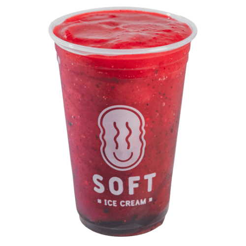 Sorvete de frutas vermelhas, leite, calda de frutas vermelhas, farofa de cookies de chocolate e suspiros