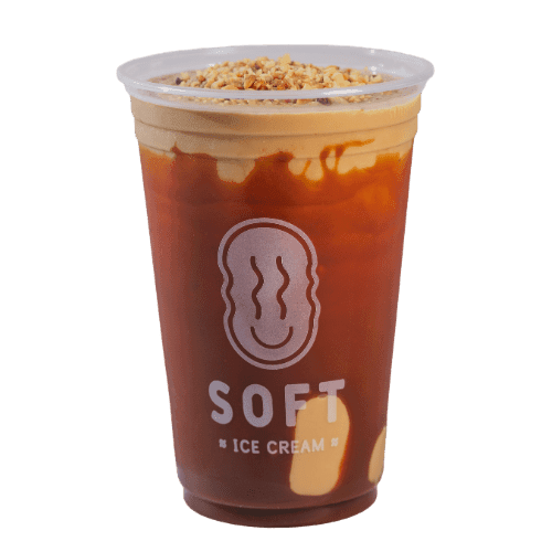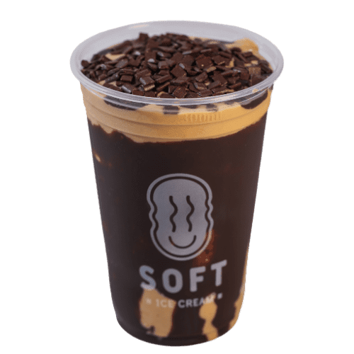 Sorvete de caramelo, flor de sal, calda de chocolate, farofa de cookies e confeitos de chocolate meio amargo.